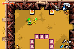 Montez sur la plaque rocheuse pour gagner l'autre rive avant qu'elle ne se disloque sous votre poids. Nouveaux ennemis, nouvelle tactique ! Sortez votre pot magique et propulsez un coup de vent sur ces ennemis de feu qui s'apparentent à des limaces. Elle se mettront alors en boule et il vous suffira de les placer dans le trou. Avant de partir, n'oubliez pas le coffre qui renferme tout de même 50 rubis !