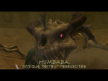 Une fois la porte déverrouillée, descendez dans l'arène jusqu'aux ossements d’une énorme créature. C'est sans compter sur l'apparition de Xanto qui fait renaître Humbaba par sa magie.