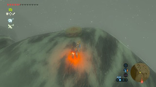 Au nord de la position précédente, dans la région d'Hébra, près d'un étendard planté au sud du pic ouest d'Hébra, vous trouverez une souche marquée d'un symbole de feuille au sol. Dès que vous marcherez dessus, un compte à rebours apparait au loin près du motif de pierres du Korogu précédent dans la région de Tabanta. Volez vers ce point dans le temps imparti pour gagner une noix Korogu.
