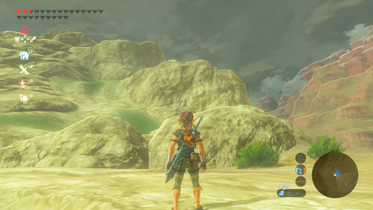 Au sud du pont de Xaff, sur la paroi de la gorge, sur une avancée rocheuse, se trouve un petite pierre seule. Soulevez-la pour vous voir récompenser d’une Noix Korogu.