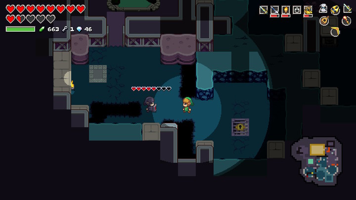 Les sous-sols ne sont pas très différents des donjons que vous avez déjà explorés. Ils sont tous composés d'un marchand, d'un coffre bleu contenant la carte ou la boussole, d'une salle remplie d'ennemis que vous devez vaincre pour obtenir une petite clé et une salle du miniboss que vous devez ouvrir à l'aide de cette dernière. Trois sous-sols s'enchaînent : les ennemis sont plus coriaces qu'avant et les miniboss également. Vous devrez affronter : une paire de chevaliers fléau reliés entre eux, un lithorok et un chevalier darknut. Dans le troisième sous-sol, vous aurez l'opportunité d'obtenir une nouvelle arme et exceptionnellement le marchand vous vendra une clé supplémentaire afin d'ouvrir le coffre doré.