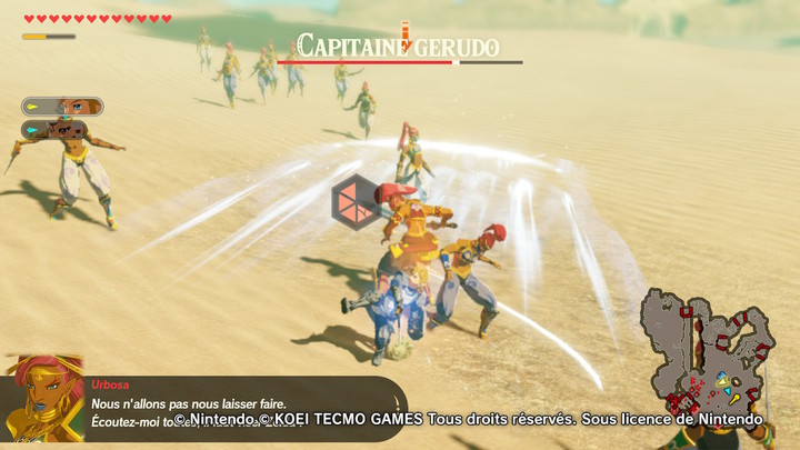 Vous vous retrouvez pris en chasse par les Gerudos, bien décidées à tuer Zelda pour une raison des plus obscures. Il est temps de demander des comptes à Urbosa.