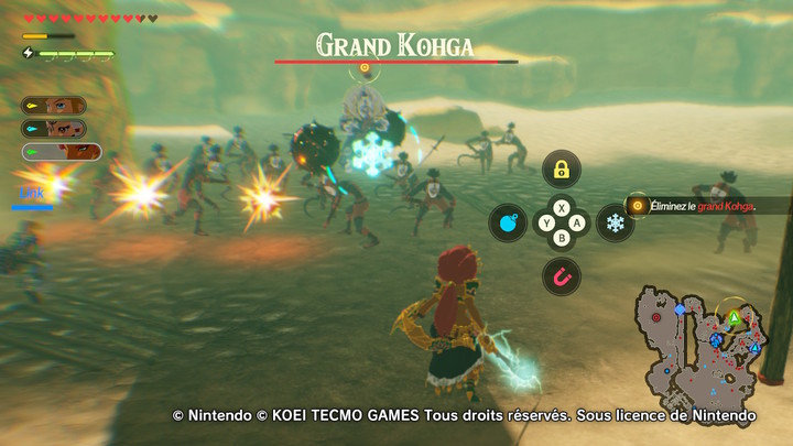 Avant de vous diriger vers le dernier objectif, prenez le temps d’explorer un peu la carte. Il y a neuf Korogus cachés dans le désert, une multitude de coffres, et des ennemis à tuer. De plus, taper sur des Yigas, ça n’a pas de prix.