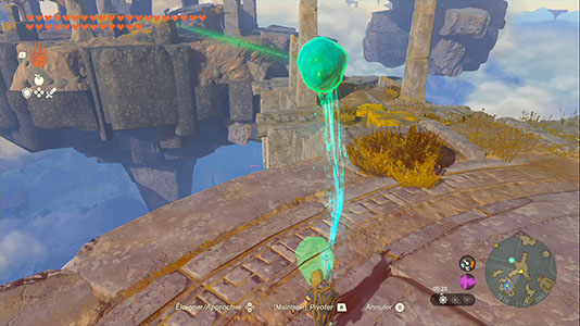Déplacez ensuite le quart de cercle pour relier l'île du fond et l'île sur la gauche. Revenez sur l'île en forme de croix derrière vous pour utiliser la catapulte qui vous permettra d'atteindre l'île où se trouve la pierre verte. Soulevez-la et posez-la sur le pont courbé. Vous n'avez plus qu'à aller sur l'île de droite pour prendre de la hauteur, planer jusqu'au dispositif, tourner l'arc de cercle, récupérer la pierre et l'amener au sanctuaire. Vos efforts s'arrêtent alors là : vous n'avez plus qu'à récupérer dans le sanctuaire un grand orbe d'énergie soneau et la lueur bienfaisante.