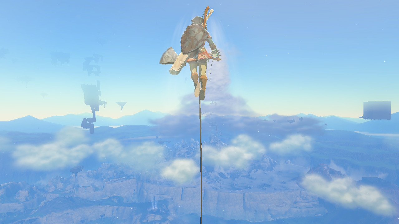 Au sommet de la tour détruite se trouve une pile de feuilles mortes. Mettez un coup d’épée chargée dedans ou brulez-les pour découvrir un rocher. Soulevez-le pour qu’un Korogu apparaisse et vous donne une Noix Korogu !