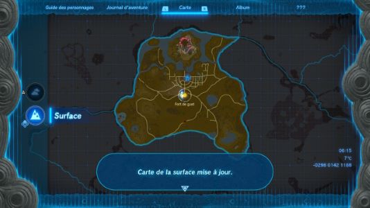 Une fois que vous avez fini votre exploration du Fort de Guet et des environs, retournez voir Pru'ha à l'intérieur de la grande tour. Elle semble avoir terminé les préparatifs. Attendez que Josha active le mécanisme en forme de gardien pour qu'elle allume la tour de reconnaissance. Les autres structures dispersées dans le royaume d'Hyrule sont également fonctionnelles. Appliquez alors votre tablette sur le terminal pour créer un nouveau point de téléportation et ouvrir le toit. La chercheuse sheikah vous explique alors en quoi consiste la tour : elle permet de cartographier les lieux. Cependant, elle avait besoin de vous pour ça. Elle vous remet alors la Paravoile. Placez-vous sur le site de lancement et faites-vous envoyer dans les cieux pour mettre à jour la carte des cieux et de la surface du centre d'Hyrule.