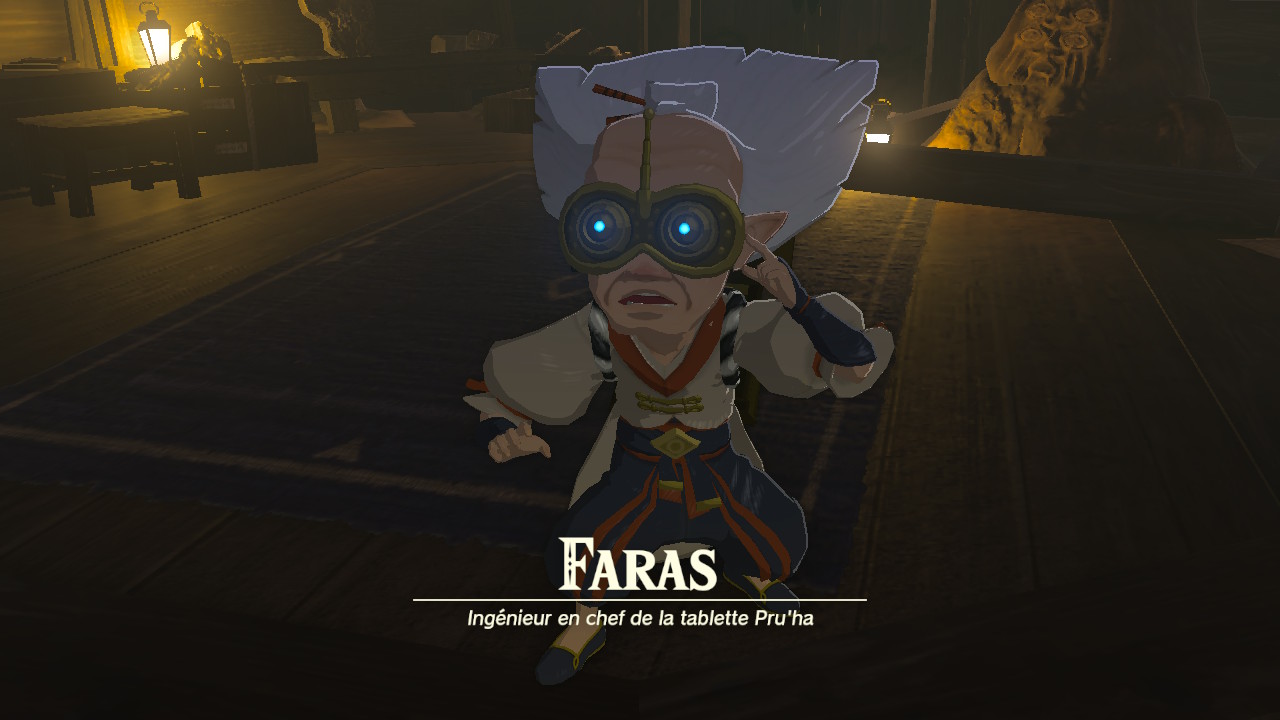 Bien entendu, vous pouvez également ne pas suivre les indications de Pru'ha et explorer comme bon vous semble... en suivant Josha qui souhaite parler à Faras, par exemple. Cette dernière souhaiterait examiner d'étranges statues qui se trouvent dans les profondeurs. Cependant, c'est bien sûr trop dangereux pour une jeune fille comme elle. C'est pourquoi Faras décide que vous l'accompagnerez sans vous demander votre avis. Avant que vous ayez le temps d'argumenter votre désaccord, il vous indique qu'il vous apprendra à vous servir de l'appareil photo, une fonction de la tablette qui n'est pas encore activée et s'en va. Vous prenant en pitié, Josha vous fournit des matériaux bien pratiques pour l'exploration à venir : 10 graines lumos et 5 flèches en bois.