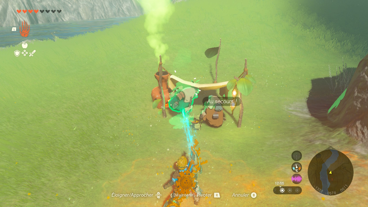 Sur la rive ouest du pont d'Hulul, un Korogu avec un sac à dos vous attend. Il n'y a rien de bien compliqué pour l'aider à rejoindre son ami. Vous pouvez par exemple utiliser un attelage sur un cheval pour l'amener jusqu'au loin. Sinon, utilisez Emprise, c'est bien suffisant pour obtenir vos deux noix Korogus.