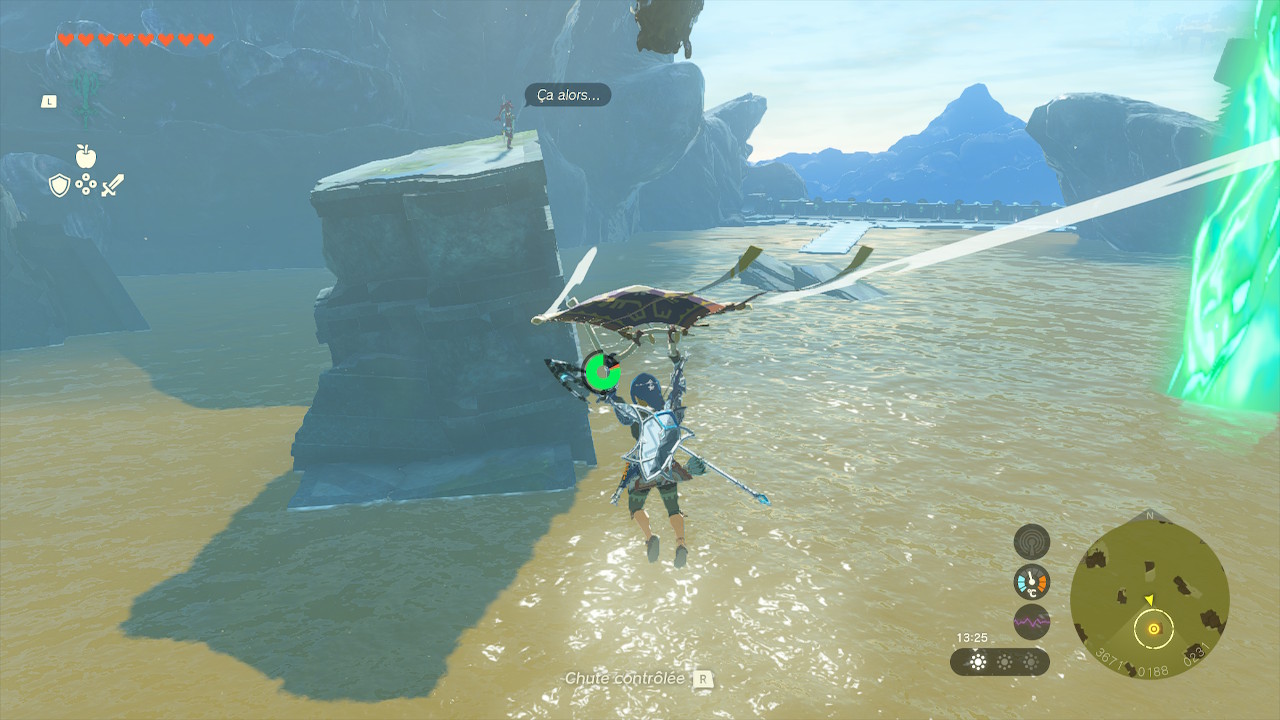 Continuez vers le nord et profitez-en pour récupérer le coffre coincé dans la vase et placé en hauteur. Il contient une capsule de déverseur. Cela vous sera peut-être utile par la suite. Utilisez ensuite une flèche amalgamée ou votre déverseur sur le pilier flottant pour libérer une nouvelle cascade.