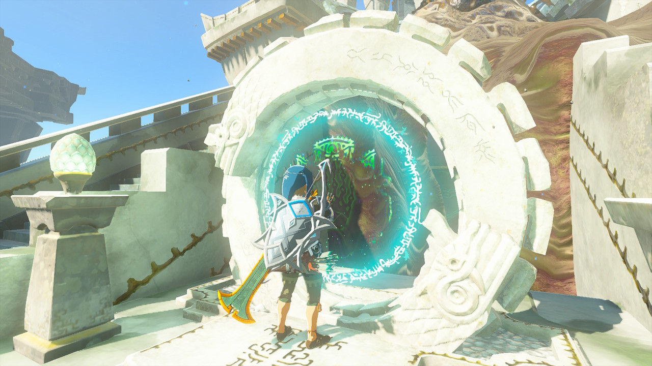 La roue à aubes se trouve juste derrière la grille, mais vous n'y avez pas encore accès. Vous devez créer de l'électricité pour ouvrir la porte. Comme dans le sanctuaire Moga Uaqa, créez des pales avec les plaques de pierre qui sont dans le bassin. Placez-les à l'opposé l'une de l'autre et commencez à faire tourner la roue pour initier le mouvement.