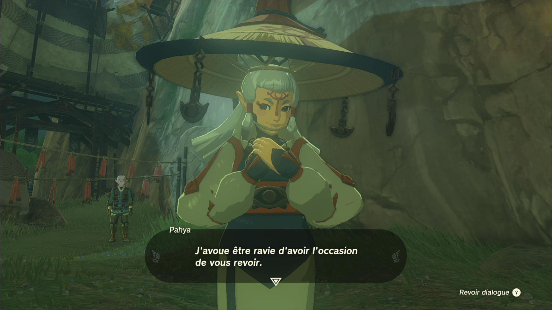 Par exemple, ne vous précipitez pas pour acheter les tenues de sheikah. Les tarifs sont prohibitifs pour l'instant. Si vous y tenez vraiment, attendez plutôt la nuit et cherchez Amboise qui est près d'une marmite sur le feu. Elle a besoin de votre aide pour soigner sa grand-mère qui est atteinte de la maladie des miasmes. Pour cela, vous devez concocter un gruau de légumes qui soigne les miasmes. Comme elle vous l'indique, il vous faut pour ça du riz, du lait et des légumes. Si vous n'en avez pas, des marchands qui passent par la route de l'ouest pourront vous en vendre. Sinon, il y a tout ce qu'il faut au magasin d'Elimith. En guise de légume, utilisez une fleur radieuse, cela suffira amplement.