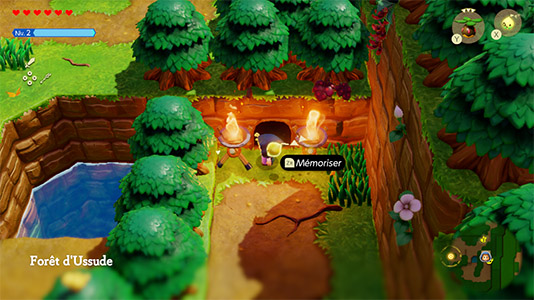 Une fois sortis du donjon, vous vous retrouvez dans la forêt d'Ussude. Vous êtes rapidement rejoints par la ministre Sénèce, tout juste sauvée du néant. Vous lui expliquez la situation et elle semble être capable de voir Tri. Une fois votre compte-rendu effectué, dirigez-vous vers le sud pour rejoindre la maison du frère aîné de dame Impa. Vous n'avez qu'à suivre la ministre pour retrouver votre chemin.