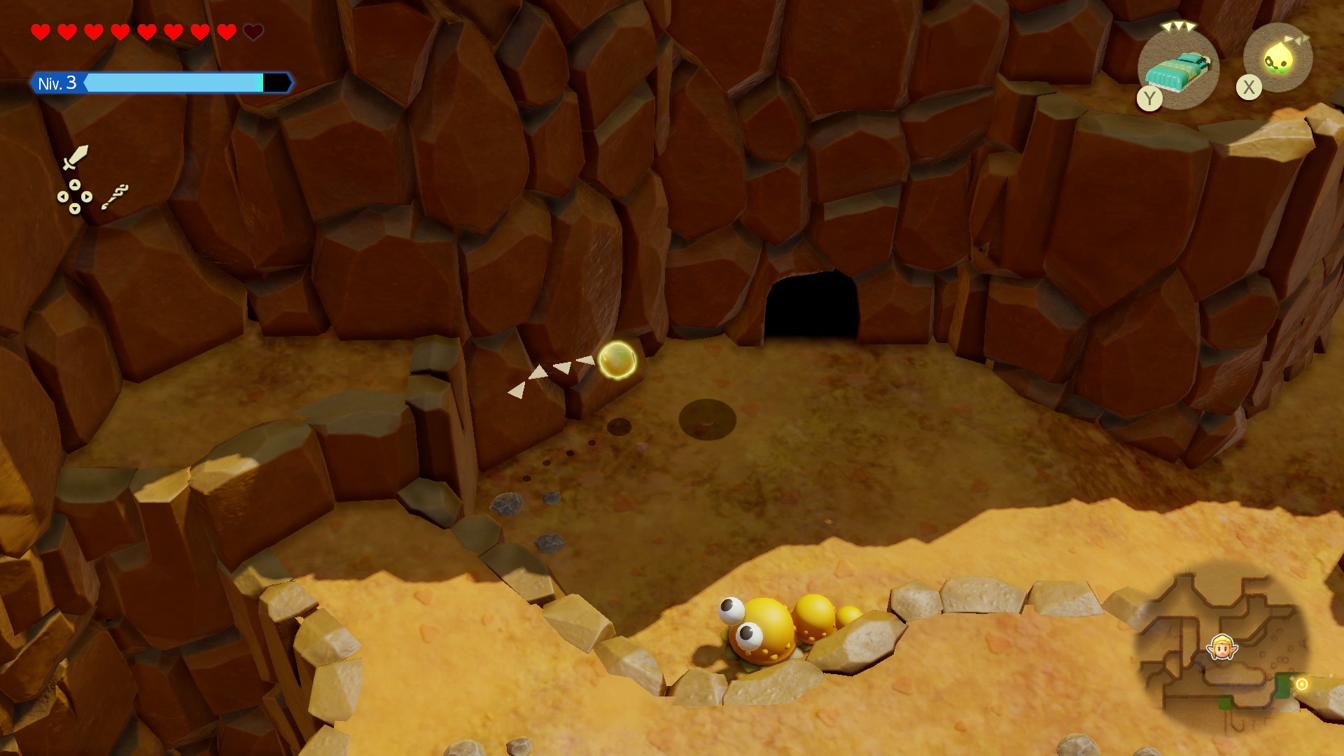 Vous faites face à de nombreux Grouilleurs. Plus vous en éliminez, plus des nouveaux vont apparaître. Ils surgissent en effet des deux nids de Grouilleurs présents. Récupérez leur écho si vous ne les avez pas déjà pris dans le sanctuaire Gerudo, avant de simplement ignorer les monstres et continuez votre chemin vers l'ouest.
