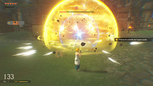 Un nouvel objectif s’affiche alors : atteindre Rauru. Cette partie du tutoriel introduit la notion d’avant-poste : terrasser vos ennemis pour diminuer la jauge d’avant-poste et faire apparaître le chef de ce dernier. Battez-le avec les techniques apprises précédemment pour prendre l’avant-poste. Un coffre apparaît alors, contenant un lot de consommables.
