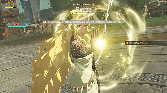 Suivez enfin le chemin en vous débarrassant de quelques hommes au passage, pour atteindre et défier Rauru. Avant d'atteindre votre adversaire, ouvrez le coffre sur votre gauche pour obtenir 500 rubis. Lors du combat, vous apprenez enfin l’esquive et l'action de foncer, puis l’attaque synchro. En finir avec Rauru ne devrait plus vous poser de problème.