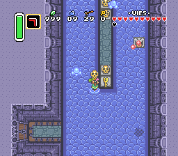 Une fois en haut, poussez le bloc et avancez rapidement dans le coin Nord-Est de la salle. De la même façon, poussez le bloc qui protège l'accès au trou et jetez-vous dedans.