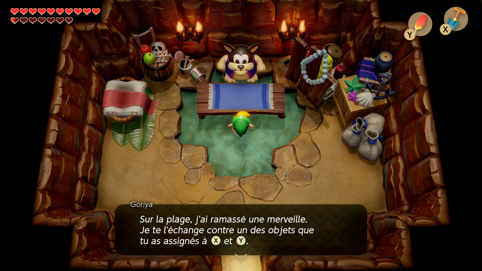 Sur Game Boy, le plus simple est d'échanger la pelle, afin de conserver toutes vos armes en même temps. À tout moment vous pouvez revenir récupérer votre objet en rendant le boomerang. Sur Switch, vous pouvez racheter votre objet laissé pour 300 rubis et ainsi ne plus avoir besoin de revenir voir Goriya.
