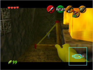 Suivez votre curiosité et laissez-vous tentez à titiller les dodongos par la queue. Une fois les trois reptiles vaincus vous avez droit à une récompense : la Boussole. Une porte vient également de s'ouvrir pour continuer, bien entendu. En marchant un petit peu, vous arrivez à une autre passerelle, qu'il faut évidemment traverser ! Vous atteignez une sorte de labyrinthe, à vrai dire, pas très compliqué.