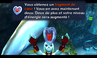 Avant de continuer, il y a moyen de récupérer deux Fragments de Cœur et un Flacon. Le premier des Fragments se situe tout droit, au fond du trou d'eau sous la cascade. Il faut tuer le Like Like pour qu'il vous le donne.