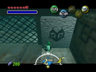 Utilisez-le ainsi que le suivant, encore à gauche, pour vous tracter jusqu'à un passage. Une vraie phase d'infiltration commence alors. Il y a trois techniques pour échapper aux Gerudos qui gardent les lieux : soit simplement mettre le Masque de la Pierre, soit les shooter au Grappin ou à l'arc (l'épée pour les plus doués), soit repérer leurs rondes et leur passer dans le dos !