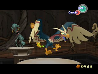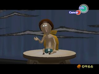 L'échoppe des figurines se situe sur un petit îlot à côté de l'île aux Forêts, que vous pouvez atteindre en planant avec la feuille Mojo à partir du sommet. Une fois cet endroit atteint, utilisez un Fruit Miam Miam pour posséder quelques instants un goéland. Faites le voler jusqu'à un interrupteur caché en haut de l'île principale ; une fois celui-ci activé, la trappe de l'îlot s'ouvrira, vous permettant d'accéder au repère de Bill les mains d'Or, le fabriquant de figurines.