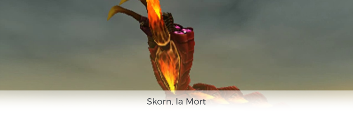 Skorn, quant à lui, prend même la forme de deux vers géants qui s'enlisent dans le sable ce qui pourrait rappeler le devenir du corps après la mort lorsqu'il est enterré. Rongé par les vers, le reste redevenant poussière. Ce boss est prévu comme celui qui fait le lien entre notre existence terrestre et notre existence céleste et donc représente l'instant de notre mort. C'est la mort, le quatrième cavalier, qui rend visite aux vivants. Il s'agit même du thème complet du donjon qu'est la Forteresse de Pierre. En effet à l'aide de la flèche de lumière, nous inversons la gravité : le ciel devient la terre et inversement.