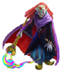Link y arrive une première fois après le combat contre Yuga dans le château d’Hyrule. Le héros passe par une faille se situant dans la chambre de la princesse, et retrouve l’esthète en pleine cérémonie. À l’aide des tableaux des sept sages et de la princesse Zelda, le sorcier ramène Ganon à la vie et fusionne avec le démon, s’appropriant ainsi la Triforce de la Force. Yuga remarque ensuite Link, et sans une intervention miraculeuse de Hilda, la princesse de Lorule, qui le renvoie à l’extérieur du château, le héros aurait sans doute péri.