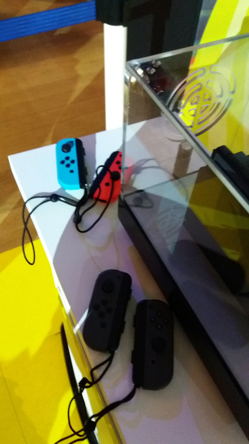 Derrière les stands de 1-2-Switch, l’espace se trouve divisé globalement en deux parties. La première se voit être disputée par un face à face des stands de Splatoon 2 et de Mario Kart 8 Deluxe. Pour les deux jeux, plusieurs postes sont prévus afin de pouvoir tester les différentes possibilités de gameplay en fonction de la configuration de la manette et des Joy-Con.