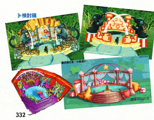 Autre élément de décor ayant fait l'objet de plusieurs versions : les fontaines des grandes fées. On y retrouve de tout, avec des inspirations indiennes ou de chambre à coucher. Dans le même style, la divinité équine aurait pu avoir un tout autre physique. À l'instar des grandes fées aux allures de drag-queen, on découvre dans cet extrait un cheval musclé comme un Lynel et au maquillage exagéré.