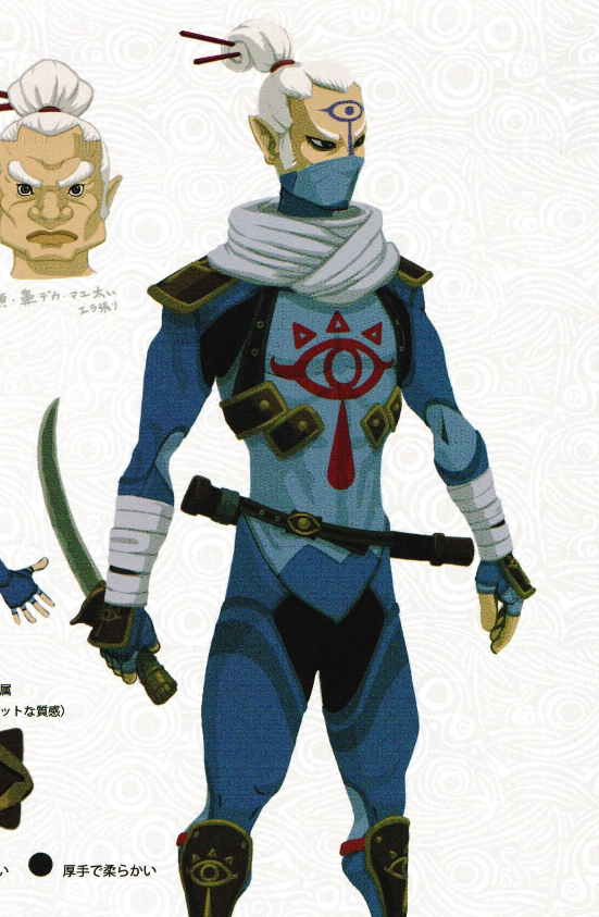 Enfin, la culture sheikah semble avoir été l'objet de recherches particulièrement poussées. Le style des villageois très homogène dans le village Cocorico, aurait pu être tout autre comme le montre les images suivantes à travers une suite de personnages qui ne perdent pas leur inspiration japonisante. Quant au drôle de personnages de Faras, différentes tenues et styles capillaires (allant jusqu'aux poils aux pattes) ont été essayés. On retiendra une forte ressemblance avec un certain personnage voyageant dans le temps à bord d'une DeLorean DMC-12.