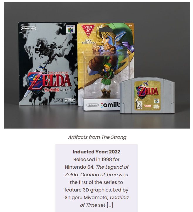 Cette année, il s'agit de The Legend of Zelda: Ocarina of Time, aux côtés de Ms. Pac-Man, Dance Dance Revolution et Sid Meier’s Civilization, qui vient rejoindre son prédécesseur The Legend of Zelda introduit à l'exposition en 2016. La concurrence était pourtant rude puisqu'il devait affronter Assassin’s Creed, Candy Crush Saga, Le démineur, NBA Jam, PaRappa the Rapper, Resident Evil, Rogue et Words with Friends.